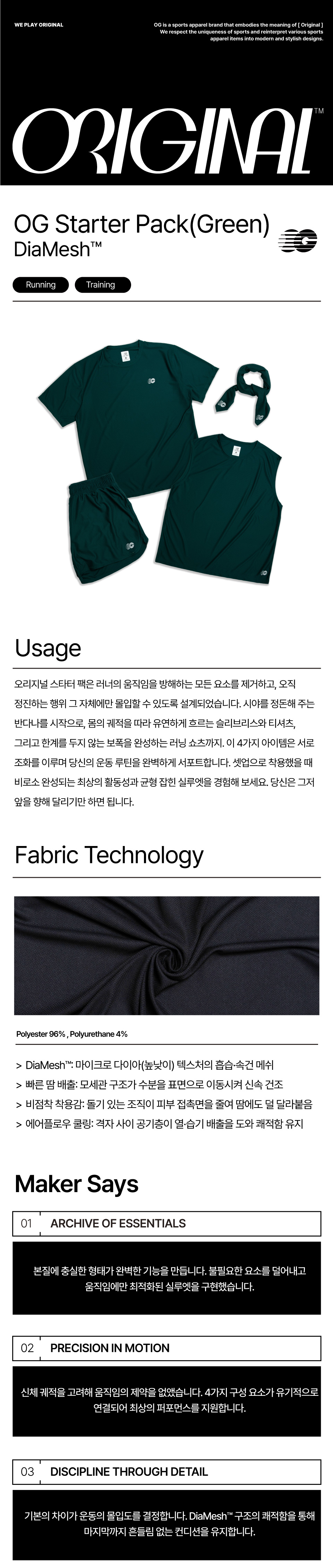 불필요한 장식을 덜어내고 옷 본연의 기능에 집중하여 오직 당신의 정진과 몰입만을 지원합니다.