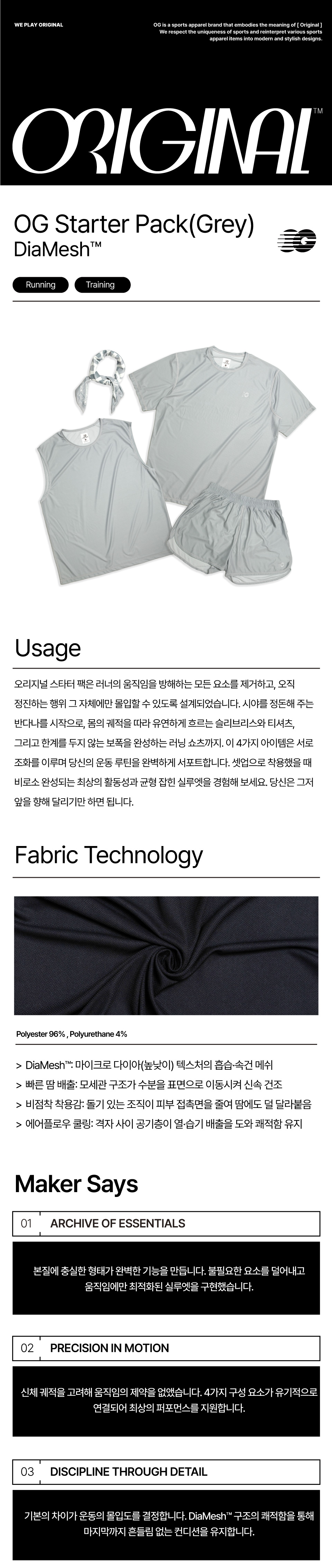 불필요한 장식을 덜어내고 옷 본연의 기능에 집중하여 오직 당신의 정진과 몰입만을 지원합니다.